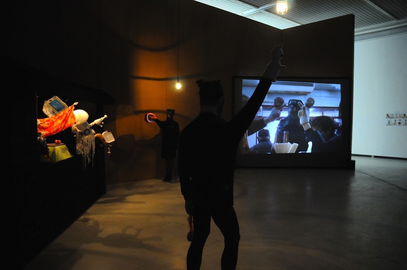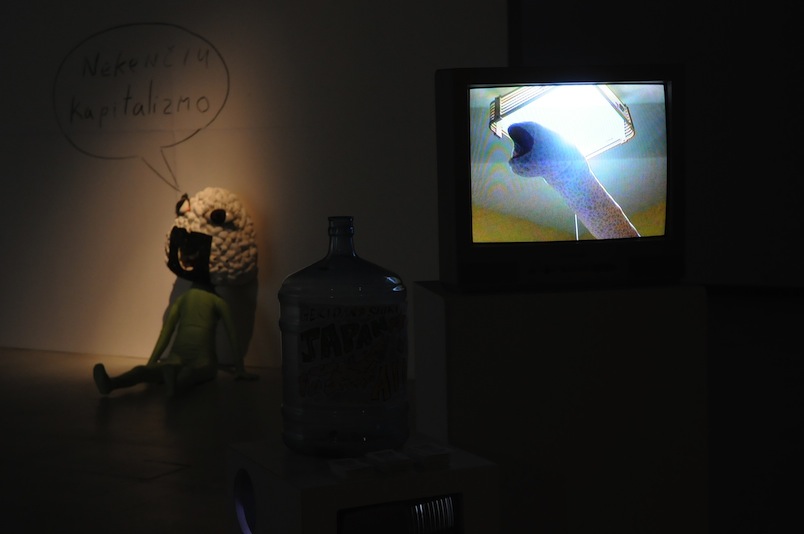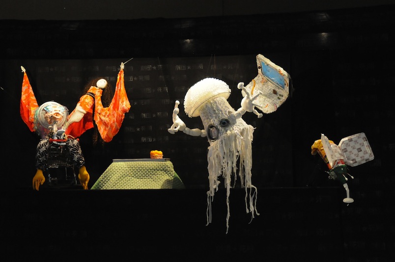 リトアニア現代美術館での会田誠個展「Diena ir naktis(Day & Night)」での展示 我が団体の顧問である会田誠氏がリトアニアの首都ヴィリニュスの現代美術館で個展を開催。 そこの一角に劇団☆死期も展示しようと言うことになり、これについては全面的に会田がプロデュースししました。 展示したのは、オリジナル黒舞台&人形&コスチュームを着たマネキン、ビデオ「KOTOBUKI TOWN is a flophouse area in Japan」「My Lithuanian Cupriccio」。 ビデオ2点はリトアニアの展示が決まってから制作したものなので、かなり現地を意識した内容となっています。 ちなみに、会田画伯は、大作MONUMENT FOR NOTHING Ⅲに加え、新作ビデオ「哲学」「おにぎり仮面小さすぎる旅」、芸術公民館をネットで繋ぐプロジェクトなど、あまり日本では展開されたことのないテイストでの出展作で埋められていたように思います。 劇団の各作品の内容詳細については各PAST SHOWをご参照ください。 ここでは、リトアニアでの出来事を思い出そうと思います。 リトアニアは、度重なる戦争で翻弄された歴史を持つ国。 その首都ヴィリニュスは中世の町並みが現存し街全体が世界遺産、希有な場所です。 町の美しさだけでなく、美人の多い町といってもいいかと思います。メーテルのように、物静かな正当派美人の多いこと。 春休みもかぶっていたので、搬入には親子で現地入りする事となり、ヴィリニュスに訪ねるのをとても楽しみにしていました。 搬入出発の直前、3月11日の地震と津波被害が日本を襲いました。その後の原発事故・・・。 私たちは、そのような混乱と不安の中、とにかく展示準備をしていました。 (日本がこんな時期に展覧会どころではないのではというジレンマも抱えつつ・・・) 予定のエアが震災後の混乱で飛ばず、運送会社もストップ状態。 停電で電力をコントロールしながら仕事を進行したり。 とりあえずしばらく遅れて展覧会準備に旅立ちましたが、到着した美術館では作品はいっさい届いておらず・・・。 日本の運送も、航空会社の輸送も、ストップしていたのです。 ついでに現地の壁さえ出来ておらず・・・(このへんのアバウトさは海外では良くある事ですが・・・) 私としては、ビデオの編集の仕上げを、暖房の効かない寒いレジデンスの片隅で仕上げるぐらいしかやることがありませんでした。 (ヴィリニュスは、暖房環境の悪さが町の大きな課題であると聞きました。) けっきょくこれといって何も出来ず、ホテルの微弱なwifi環境で日本がどうなったか調べつつ、おにぎり仮面のロケ班を氷雨の中漠然としつつ、そんな暮らしを見かねた学芸員の勧めで郊外のスパに浸かったりしつつ、時が過ぎて行った思い出があります。 現地では大勢の方々に声をかけていただきました。道ですれ違う人からも。 「日本人か?あなたの家は大丈夫か」と。 みなさん津波のみならず原発事故について心配して下さっていました。 フランスの方には「なにかあったらパリに住んでるから来てくれ」と言われたり。 こういう時、子連れで移動していると、大人だけで居るよりも色々と声をかけて下さる気がします。 そういえばどこかの民俗学者の方も、以前見た放送大学の番組でおっしゃっていました。 ファミリーで尋ねると、ドメスティックなコミュニティから受け入れてもらいやすく、結果的に研究の充実に繋がるそうです。 人形、子ども、どちらも国境の壁を越えてなにかしらのシンパシーを感じ合えるツールになるのではないかと思った次第です。 何も設置が出来ず団長&息子のみ帰国する事となったリトアニアでの展示でしたが、私と入れ替えに現地入りしたギャラリースタッフさんと会田さんが引き継いでいただき、無事展示を仕上げる事が出来ました。 「My Lithuanian Cupriccio」は、ときたまクスクスとお客様から笑いの反応をいただき、「KOTOBUKI TOWN is a flophouse area in Japan」はポカーンとされ(かな?)、と会田氏は言っていましたが、みなさんどう感じていただけたのでしょうね。展示全体、不思議の国ニッポンという印象だったでしょうか。 | ||
