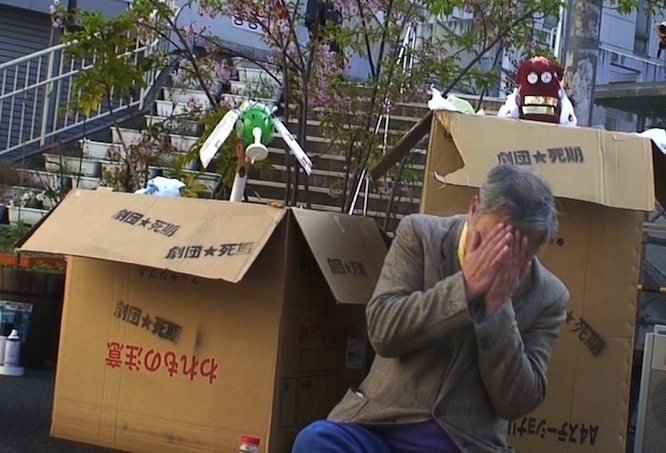 | 右の映像は新作「My Lithuanian Rhapsody」(Performing by 大塚聰)(左に見えるおにぎり仮面は会田誠の作品/これは劇団☆死期ではないのですが) | 「My Lithuanian Rhapsody」は孤高のアーティスト大塚聰氏が作詞作曲した、リトアニア語の国歌みたいな曲を歌うというもの。 | |
